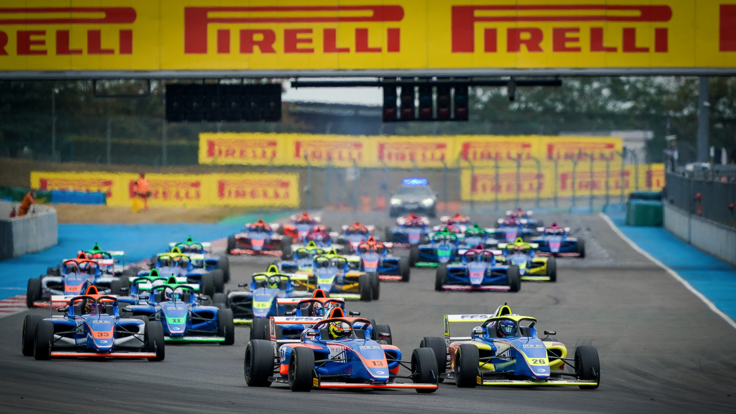 Rayan Caretti attendait avec impatience de célébrer sa 1ère victoire en Championnat de France F4. Il a atteint son objectif en Course 1 à Magny-Cours face à Rafaël Perard, tandis qu’Arthur Dorison a dominé la Course 2 pour signer son 4e succès en 2025.
